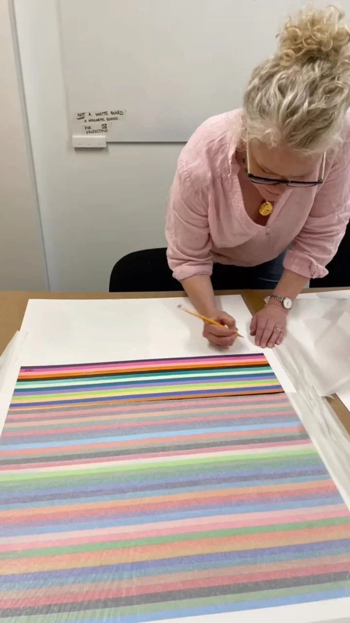 Working with deceptively simple abstract pattern and form, Claire invites the viewer to follow her epic journeys across the spectrum and engage with her colour conversations. From the deepest, darkest blacks to fluorescent pinks, saturated blue hues and everything in between, lose yourself and find yourself in an abstract world of light, shade, pigment and tone.